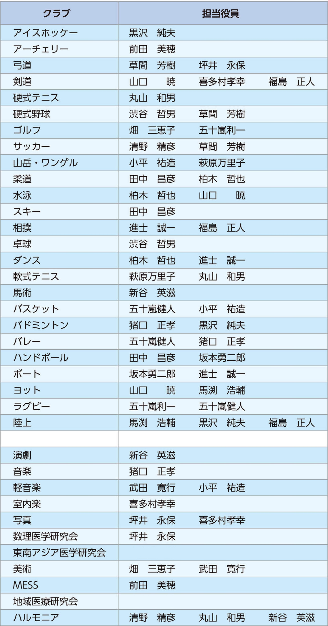 クラブコネクション担当表